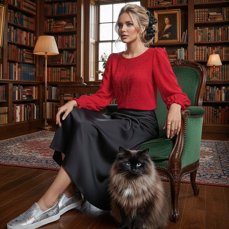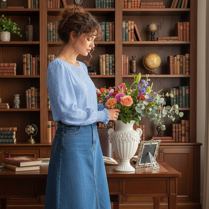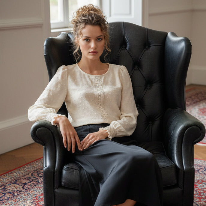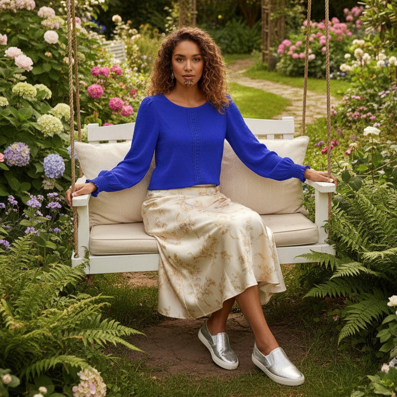 Elevate your everyday wardrobe with this charming blouse that effortlessly blends sophistication and comfort. Delicate dotted material with lace trim adds a touch of elegance, while the statement lantern sleeves and deep shirred cuffs bring a playful flair to any outfit. The relaxed, easy fit ensures all-day wearability, making it your go-to piece for casual styling across every season. Choose from five gorgeous hues - Stone, Cornflower Blue, Royal Blue, Lotus Pink, and Cherry Red - in sizes S–XL to find your perfect match.