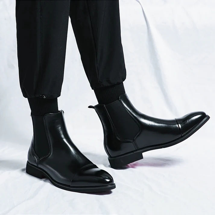 Step Up Your Style Game with Red Bottom Chelsea Leather Boots - Elevate your wardrobe with red bottom Vegan Leather boots, combining classic design with a bold twist. Perfect for any occasion, these boots make a lasting impression.