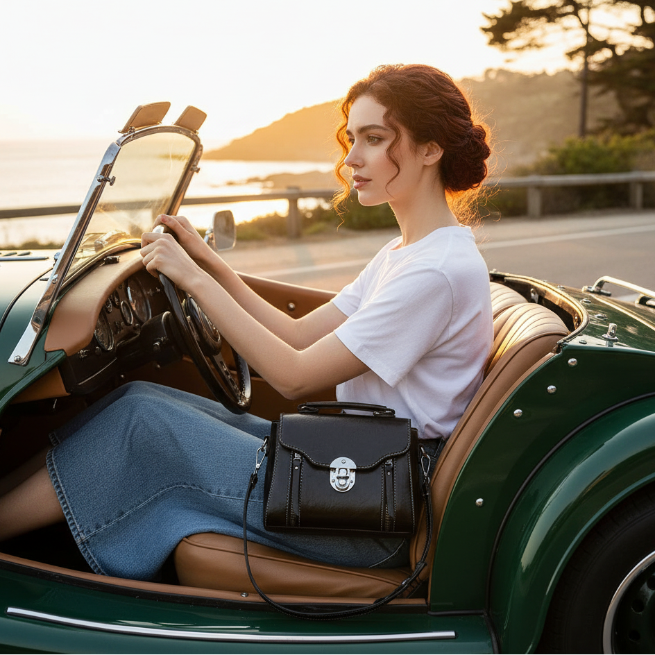 Carry your world in style with this charming retro messenger bag that blends vintage vibes with modern practicality. Crafted from soft vegan leather with a durable polyester lining, it's built to handle whatever your day throws at you. The thoughtfully designed interior keeps you organized with dedicated slots for your phone, a handy zipper pocket, and a file section for documents. Available in a range of eye-catching colors, this compact horizontal square silhouette is light enough to sling over your shoulder without the bulk. Your new go-to companion for work, weekend adventures, or anywhere in between.