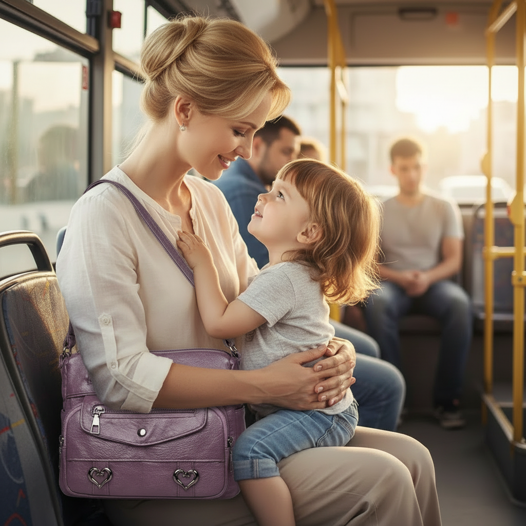 Vintage-inspired multi-pocket crossbody bag made from soft vegan leather, featuring a cute heart accent - perfect for carrying your essentials with a playful twist.