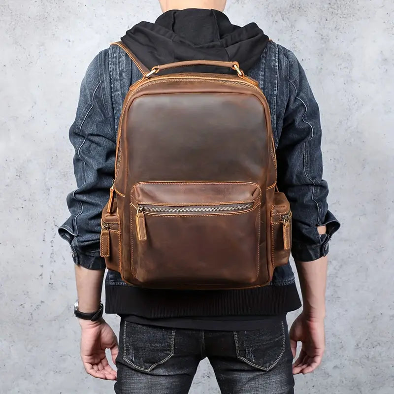 Handcrafted to suit your daily needs, The Langley Backpack is a multifunctional, cowhide leather travel backpack made from high-quality crazy horse leather.