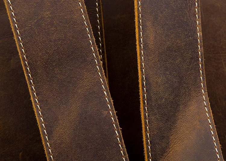 The design is made with back support in mind, as it distributes the weight evenly across the body of the bag, providing comfort in transport and security for items. With genuine cowhide leather of a rusted deep brown, the colors will only develop with the general wear and tear of daily use.