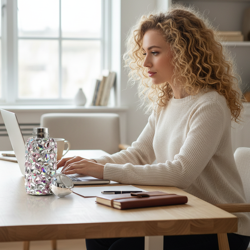 This Chic Rhinestone Studded Insulated Vacuum Flask holds a neat 260ml (9oz) and features dazzling rhinestone accents. This thermal travel cup keeps beverages hot or cold, making it perfect for year-round use and an excellent gift choice.