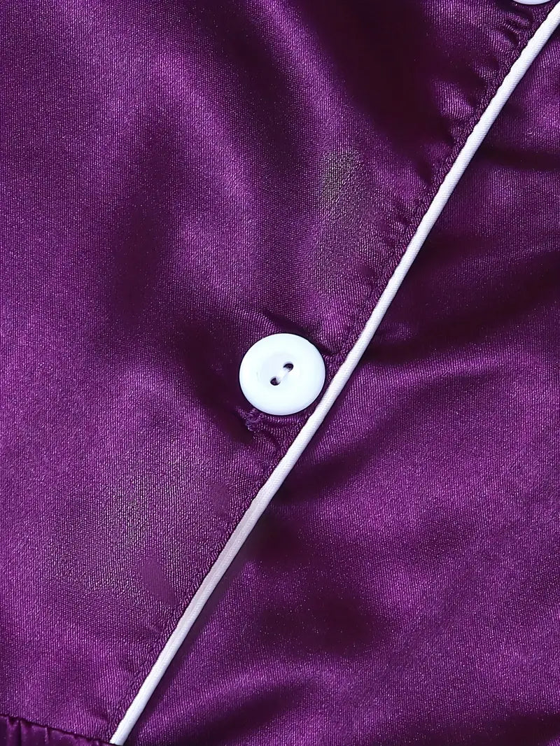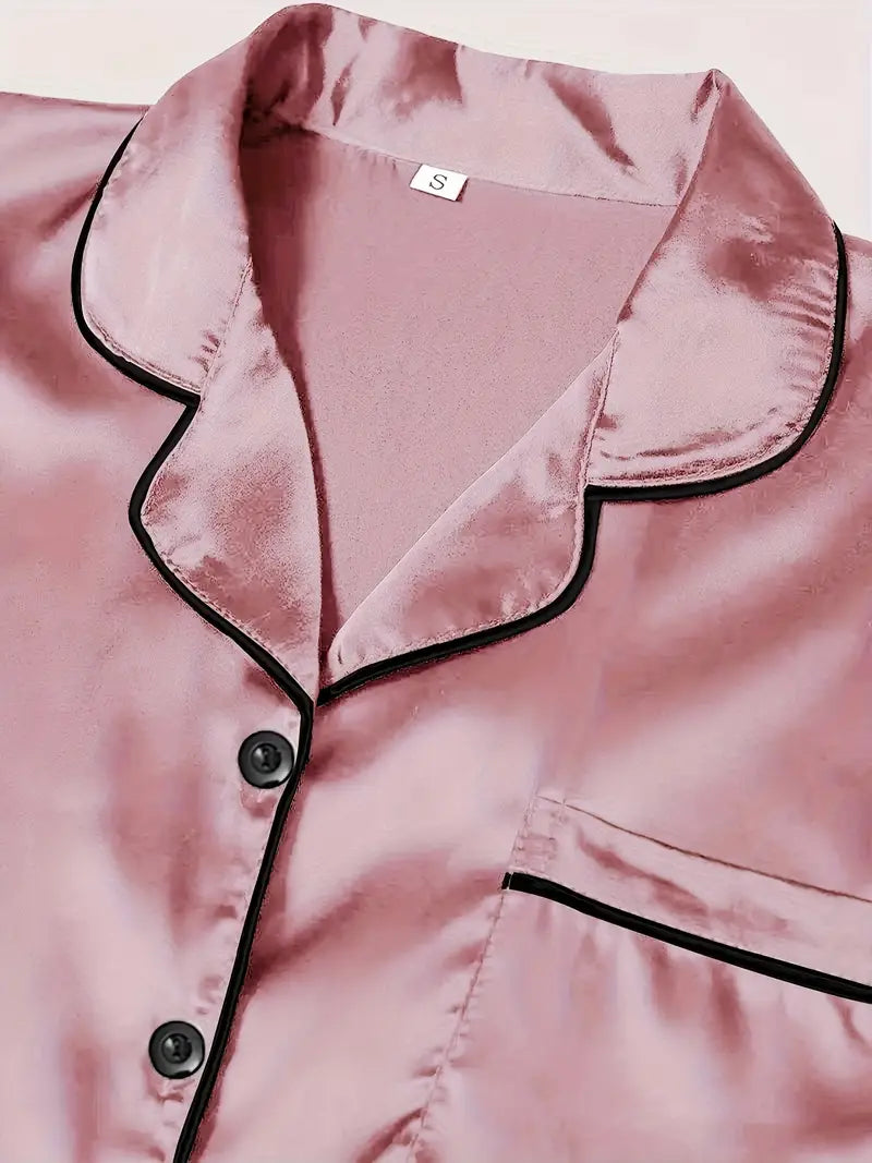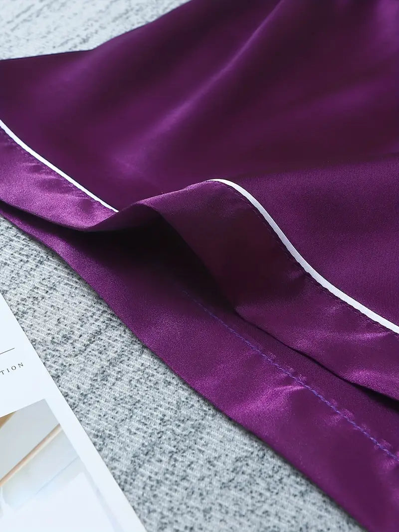 Slip into cozy luxury with this satin casual pajama set that’s perfect for lounging. The short-sleeve button-up lapel top pairs effortlessly with both shorts and pants, giving you options to match your mood and the temperature. Soft, silky satin fabric feels smooth against your skin, making every moment in these PJs a stylish, relaxed experience. Whether you’re unwinding after a busy day or enjoying a lazy weekend morning, this three-piece set keeps comfort and fun front and center!