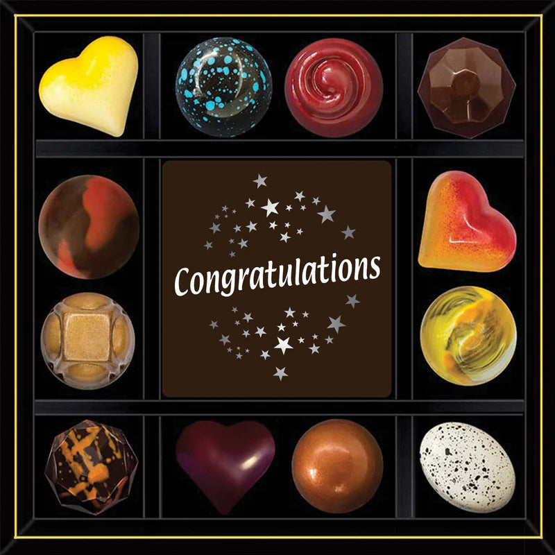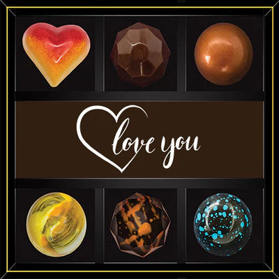 Beautifully flavored artisan chocolates will sparkle back at you as you try and decide which to taste first. With every flavor created from scratch, each chocolate tells it’s own unique story. Includes a beautifully delicious “Love You” Chocolate message bar. This is top shelf chocolate at its finest.