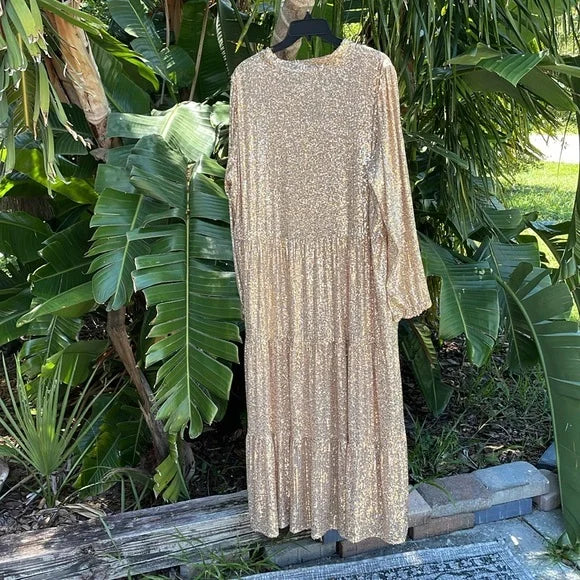 We are thrilled to bring you this best-selling silhouette just in time to elevate your holiday looks. This one is for the girl who loves to shimmer and shine!  We think it is the ultimate holiday hostess look with its sophisticated length, breezy fit and lining for comfortable entertaining. These quality sequins are built to help you sparkle all night long. We can't wait to see how you choose to style this striking gold frock for all of your upcoming gatherings.