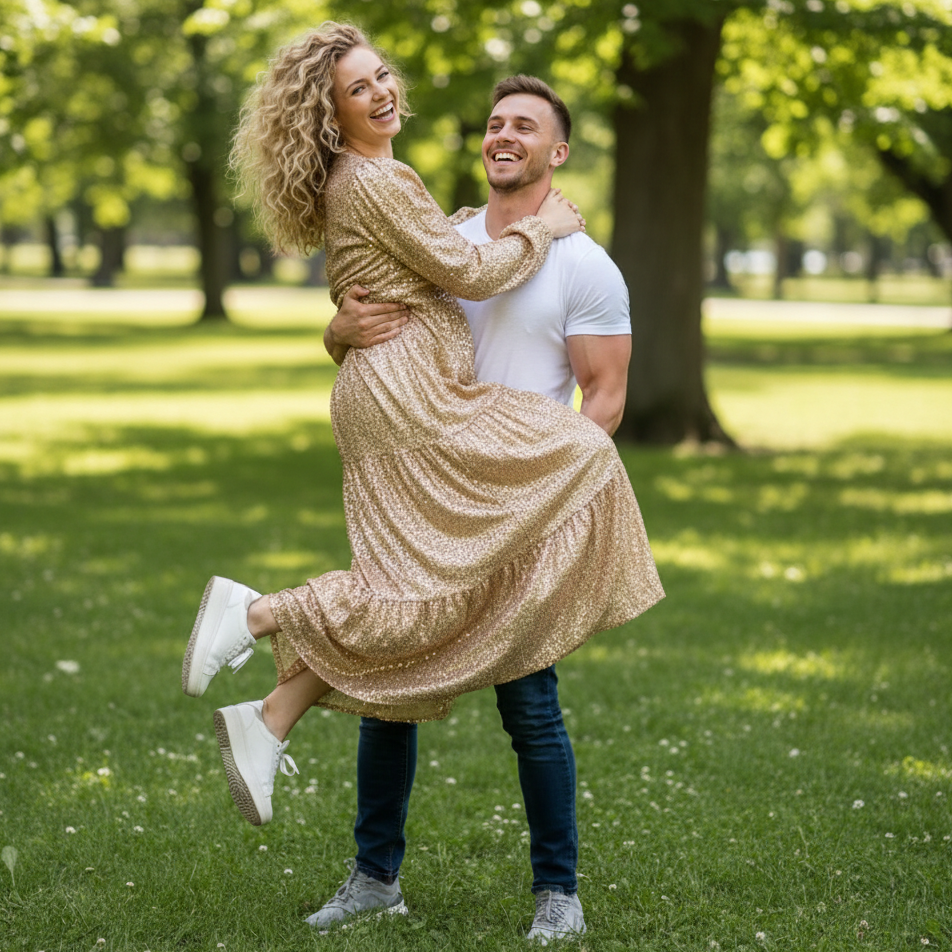This Sable Midi Sequin Dress is an elegant and eye-catching long-sleeve midi dress designed to make a statement. Featuring a flattering V-neck and shimmering sequin details, this dress offers a perfect balance of glamour and sophistication.