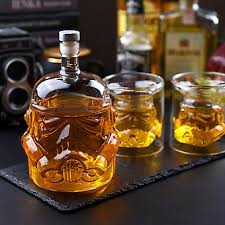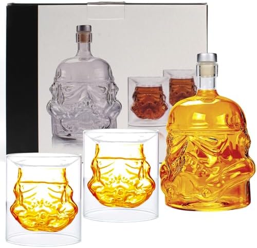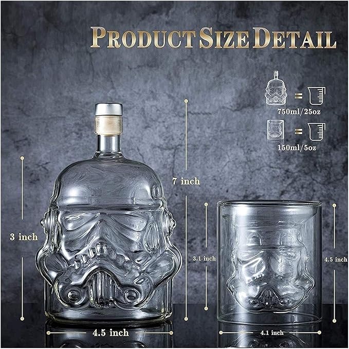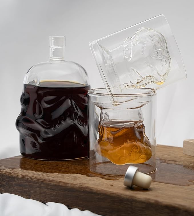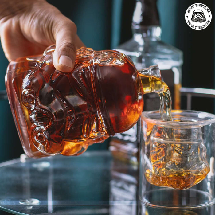 This Star Wars Stormtrooper Glass Decanter is an elegant addition to any collection. With a large 750ml capacity and airtight cork stopper, it keeps your drinks fresh for longer. The hand-blown design features a cool helmeted stormtrooper that enhances your drinking experience.