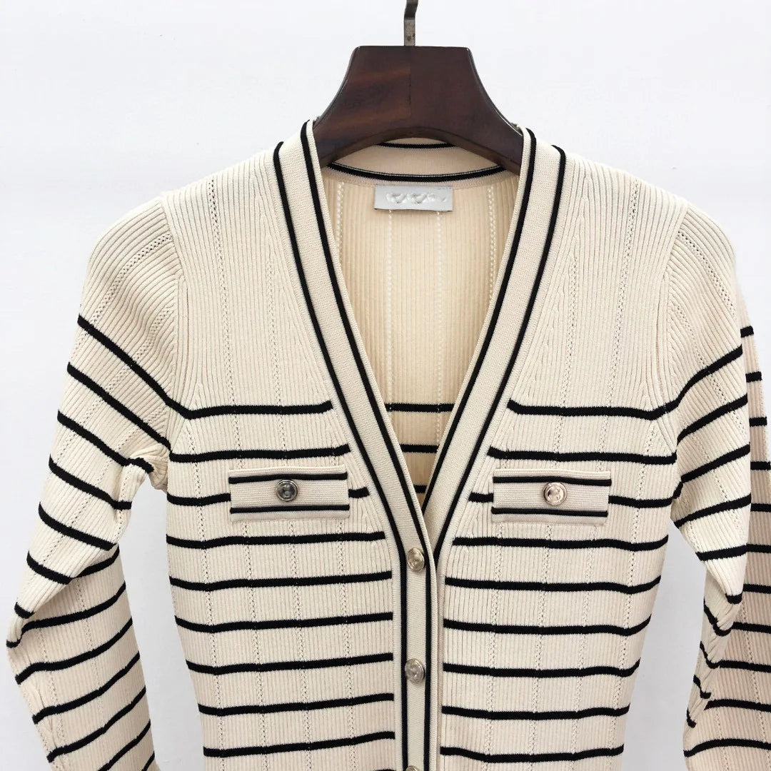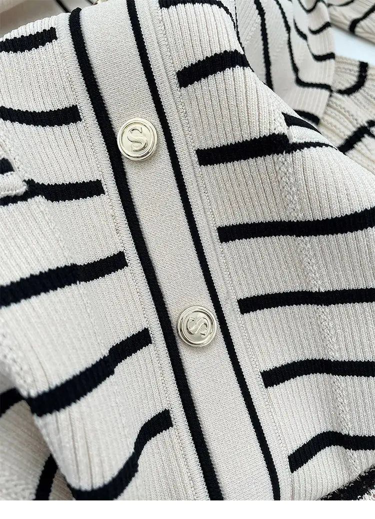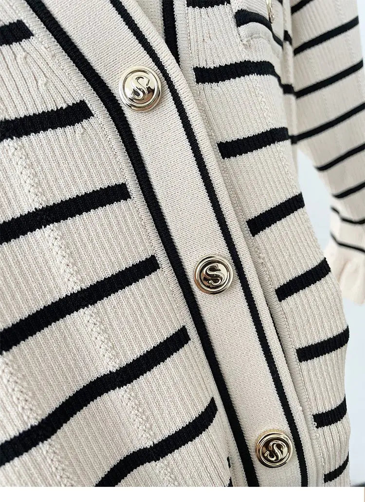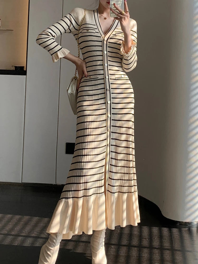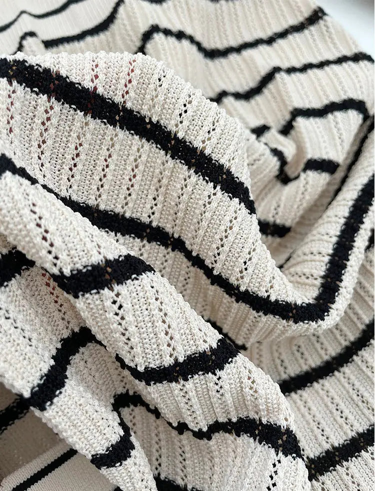Embrace Comfort and Style in Every Stripe of Our Midi Dress Experience the perfect combination of cozy and fashionable with this Armelline Sandro Striped Knit Midi Dress.