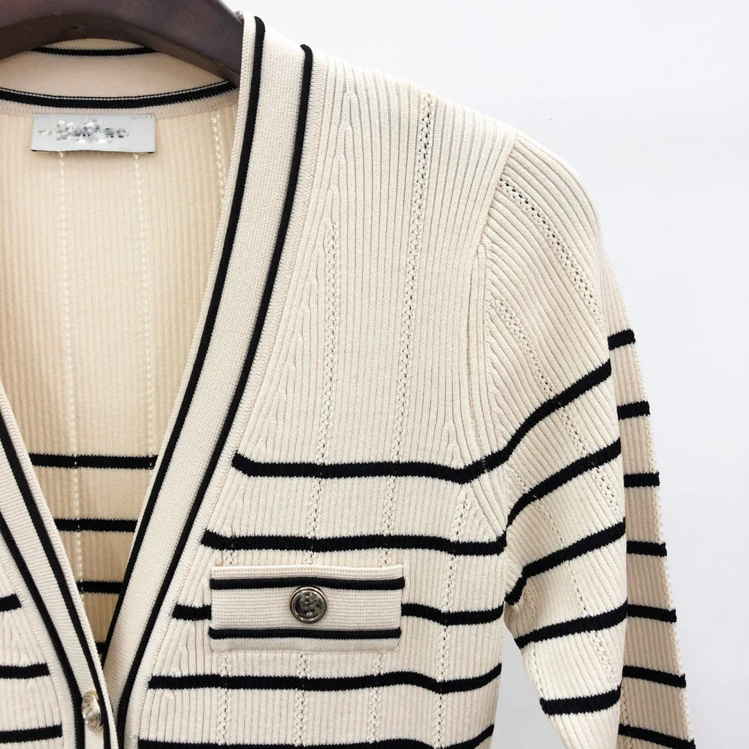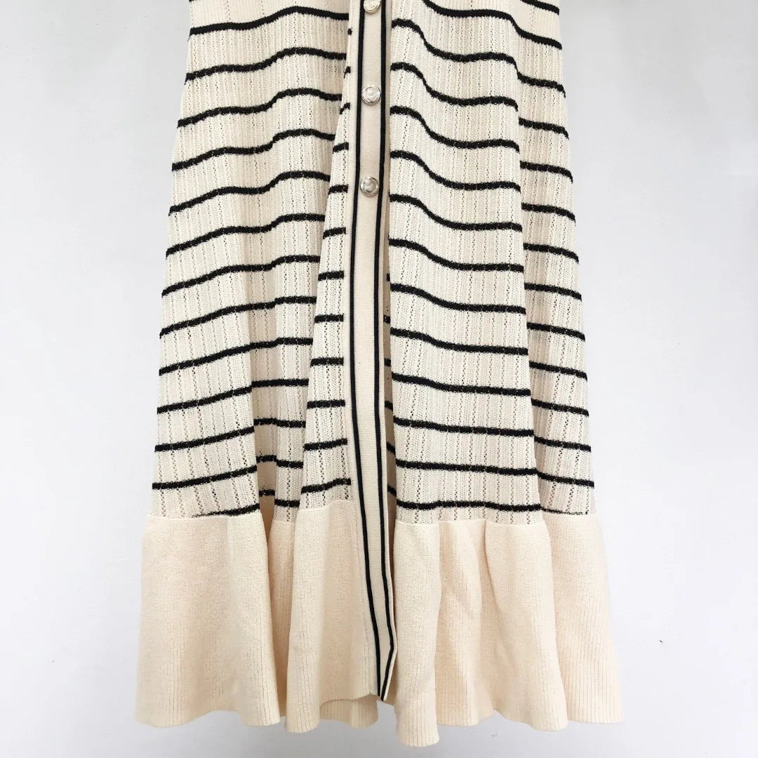Step into Elegance with Our Armelline Sandro Striped Knit Midi Dress Elevate your wardrobe with a dress that blends comfort and style seamlessly. This Striped Knit Midi Dress features a chic and classic striped pattern that complements any occasion, whether you’re heading to a brunch with friends or a casual day at work. The soft knit fabric drapes beautifully over your silhouette, offering a flattering fit that moves with you throughout the day. You’ll love the ease of dressing up or down with this versatile piece, making it a go-to option for effortless elegance.
