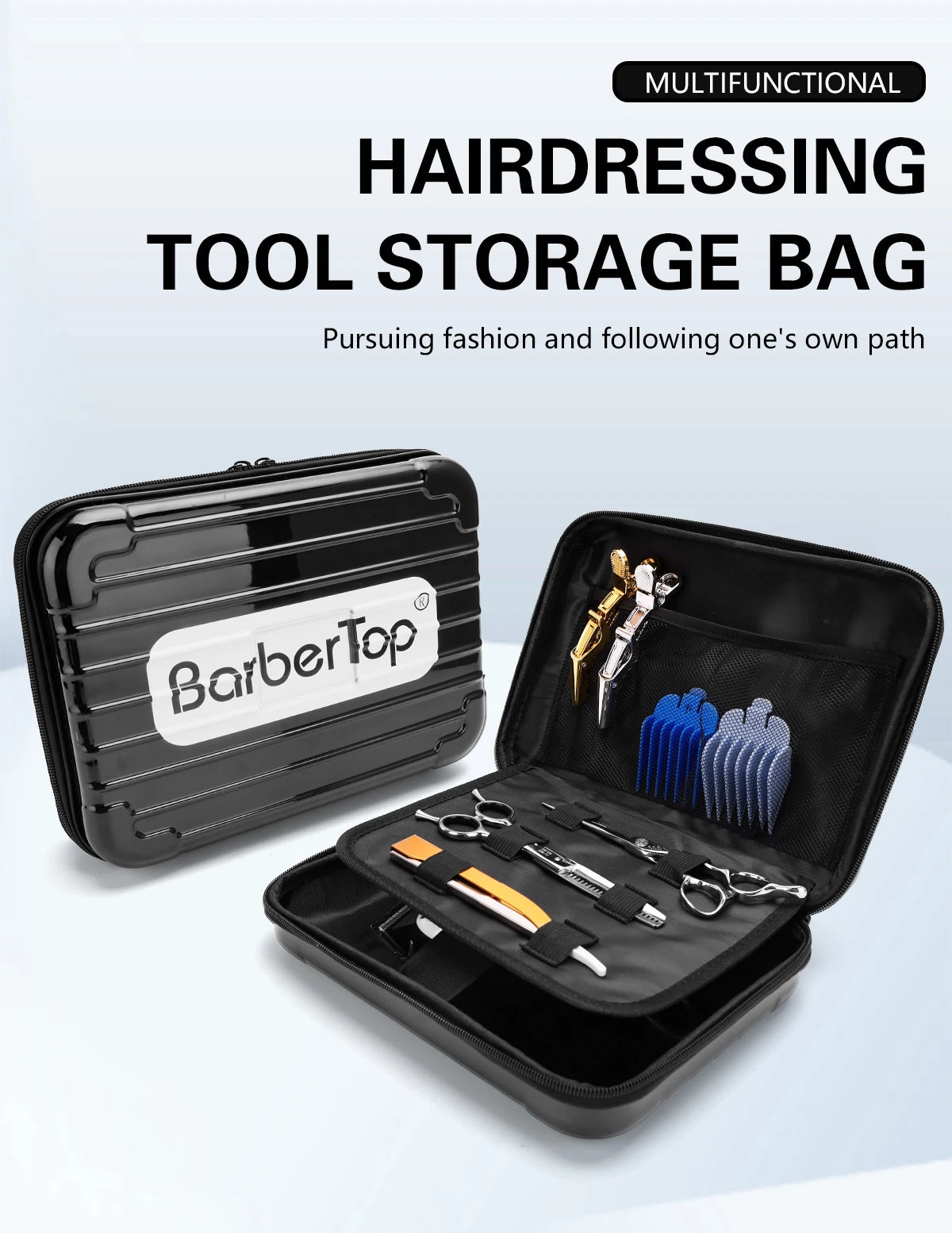 Elevate your hairdressing game with the Styling Tool Box Hair Scissors Case. Its professional design provides ample space for your scissors, combs, and other essential tools, making it an ideal companion for both salon and home use.