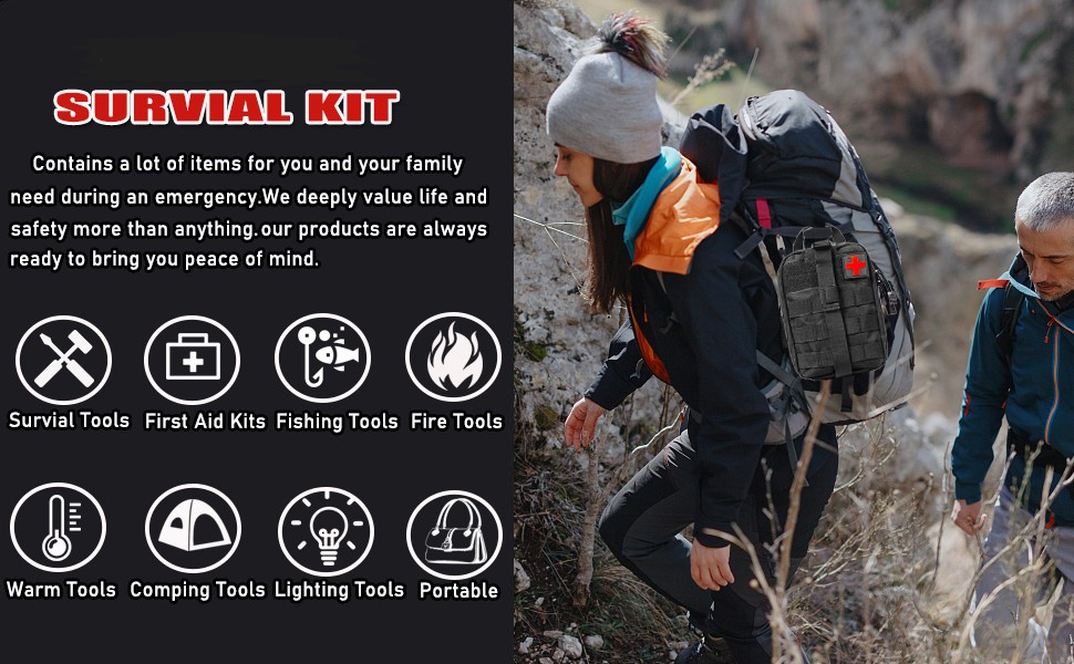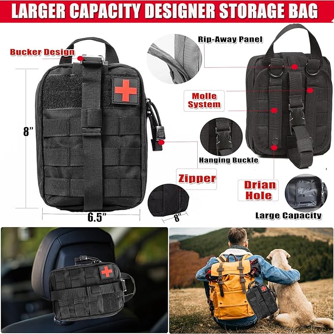 Be prepared for any adventure with this durable and versatile Survival First Aid Kit. Designed with practicality and reliability in mind, this kit is an essential companion for outdoor enthusiasts, campers, hikers, and emergency responders.