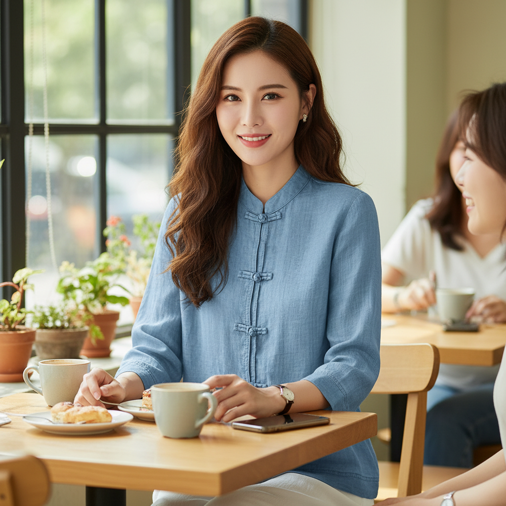 Refresh your wardrobe with TADAMA Plus Size Tops, showcasing a fashionable Mandarin Nehru collar, sheer cuffs and hem, and elegant 3/4 sleeves. These tops offer both sophistication and comfort for a polished, confident look.