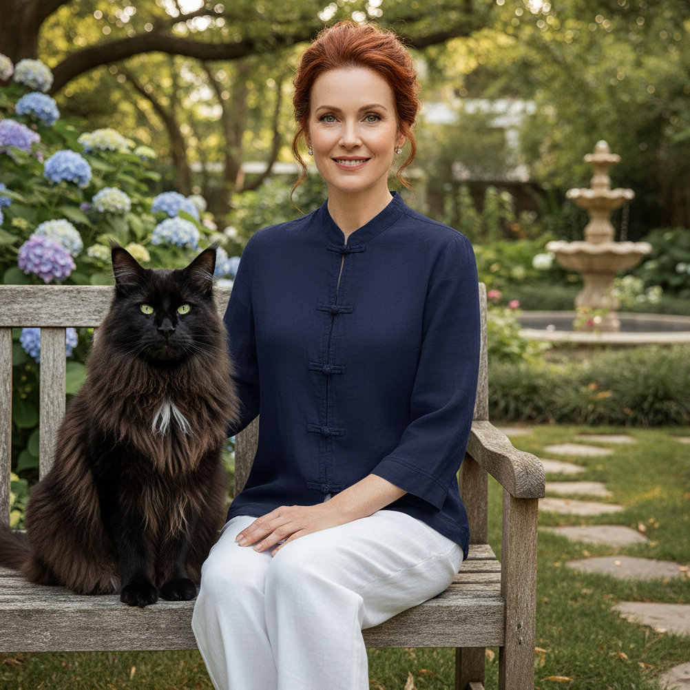TADAMA Plus Size Mandarin Nehru Collar Top