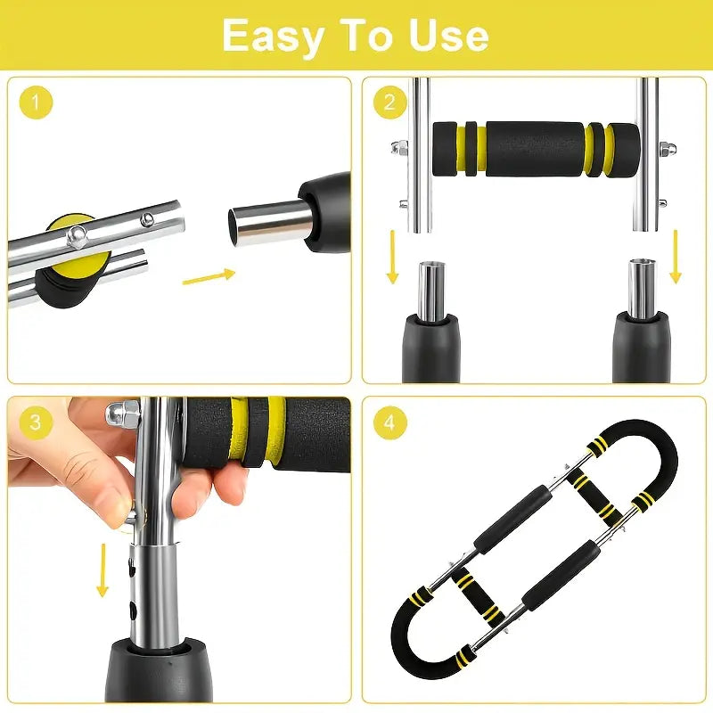 The U-Shaped Home Gym Strength Training System provides adjustable resistance (30kg, 40kg, 50kg) for upper body workouts. It has non-slip grips and targets chest, arms, shoulders, and abs. Suitable for all fitness levels, it’s portable, compact, and requires no electricity. Durable grips and comfortable handles make it easy to use.