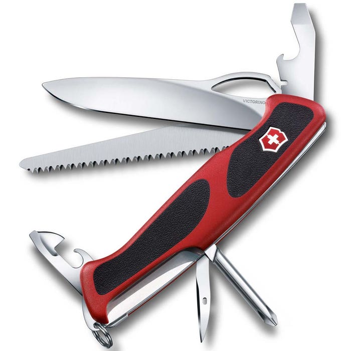 - Swiss made pocket knife with 12 functions and two-component scales for outstanding grip.
