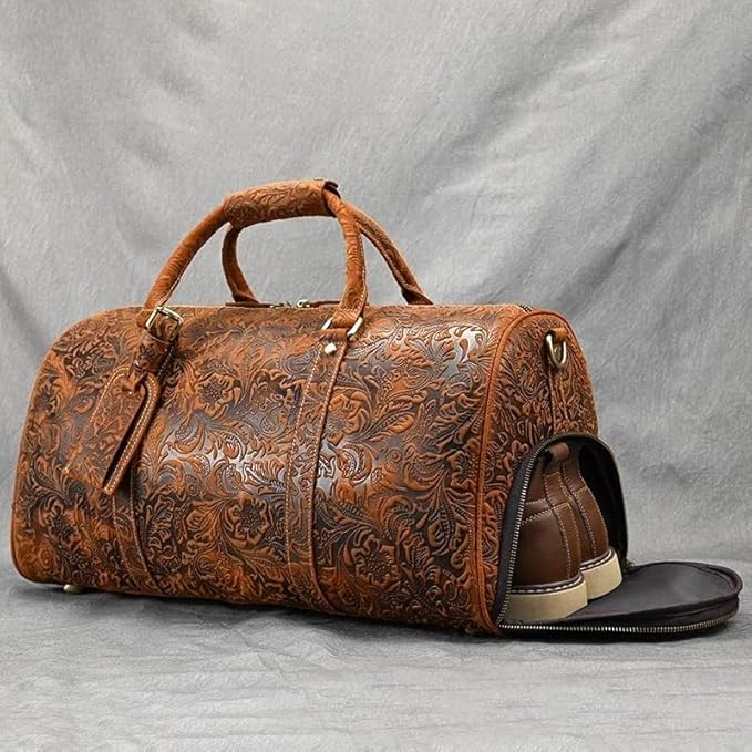 Experience the perfect blend of style and durability with Vintage Crazy Horse Embossed Leather Weekend Bags. Crafted from genuine first layer cowhide, this weekend bag is designed to withstand the test of time while making a bold fashion statement.