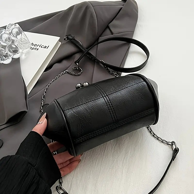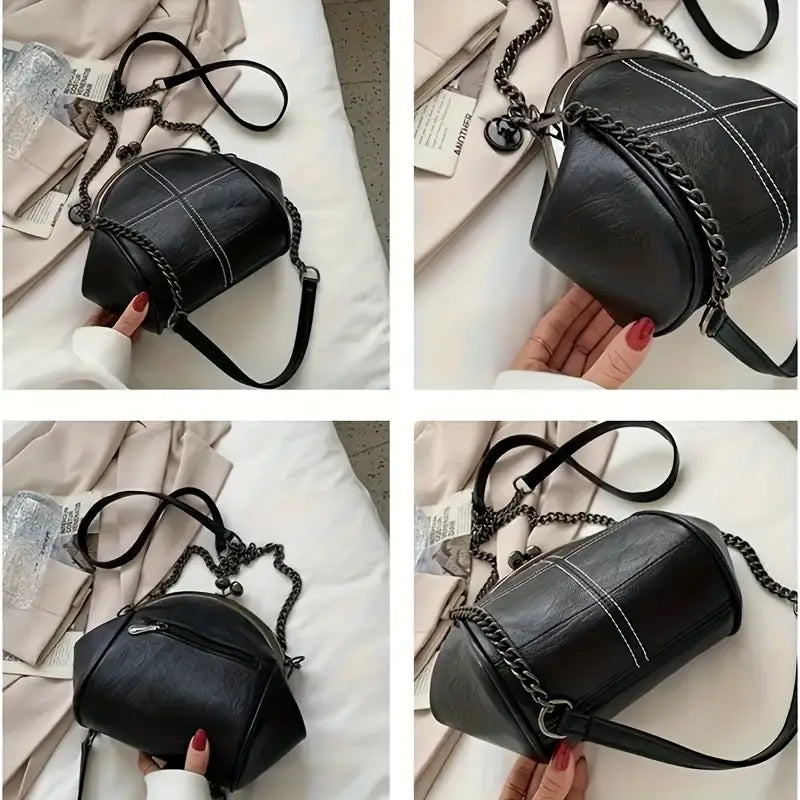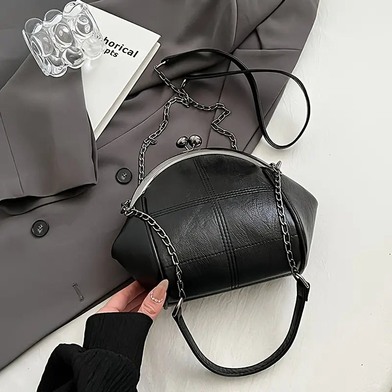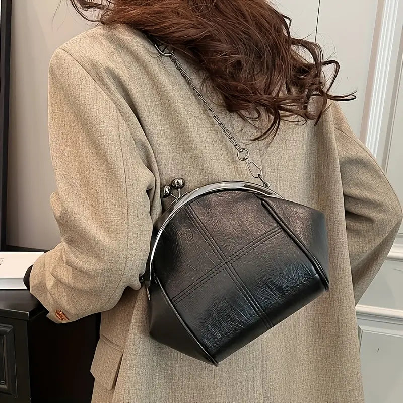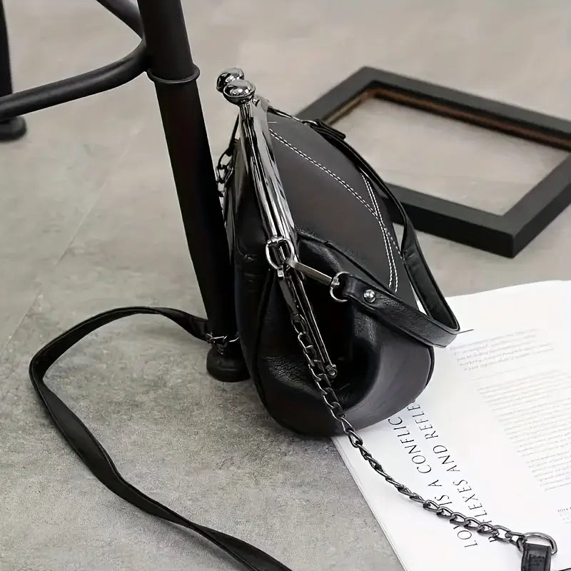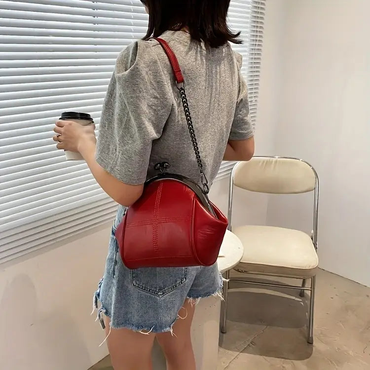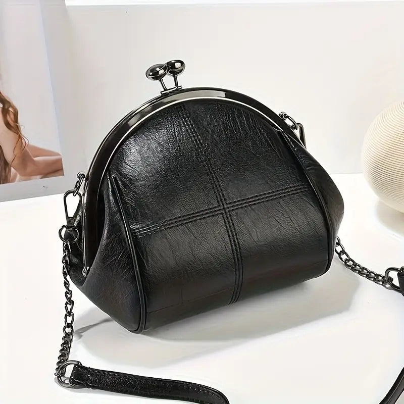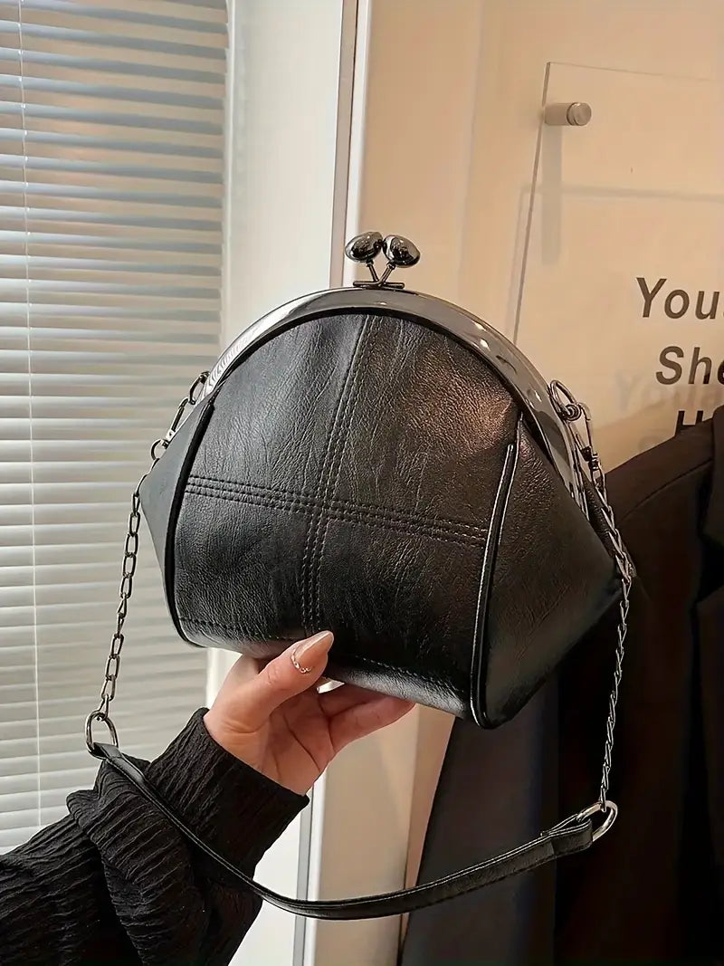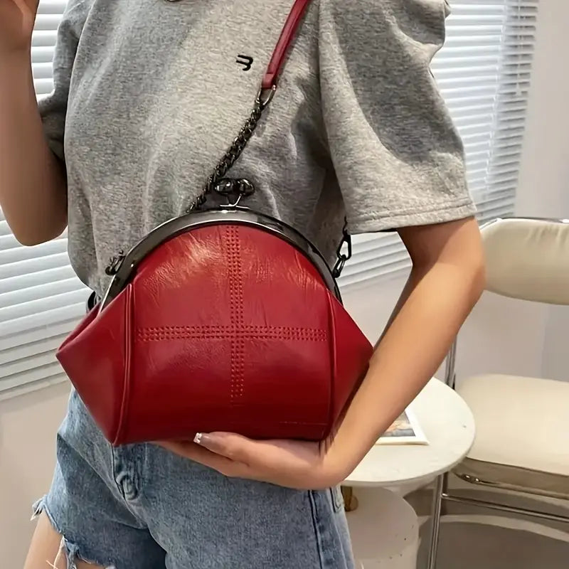 Add a touch of retro charm to your evening with this Vintage Kiss Lock Clutch Bag. Featuring a playful shell design and a roomy interior, it holds all your essentials in style. The adjustable strap lets you switch from hand-held to shoulder carry, while the silver metal kiss lock closure adds a classic sparkle. Perfect for evenings when you want to stand out with simplicity and grace.