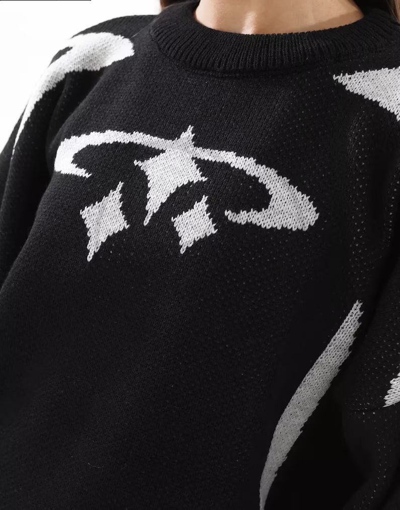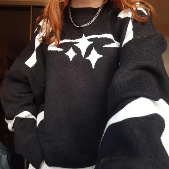 Retro-Inspired Design: Featuring a striking stars graphic reminiscent of vintage styles, our knitwear sweater adds a playful twist to your look. Whether you're channeling your inner '80s icon or embracing a retro vibe, this sweater is sure to make a statement.
