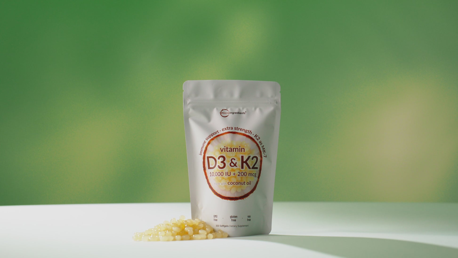 Vitamin D3 + K2 are essential micronutrients for adults that work together to support proper calcium absorption to our bones and teeth, while also promoting joint health, immune defense, and heart function.