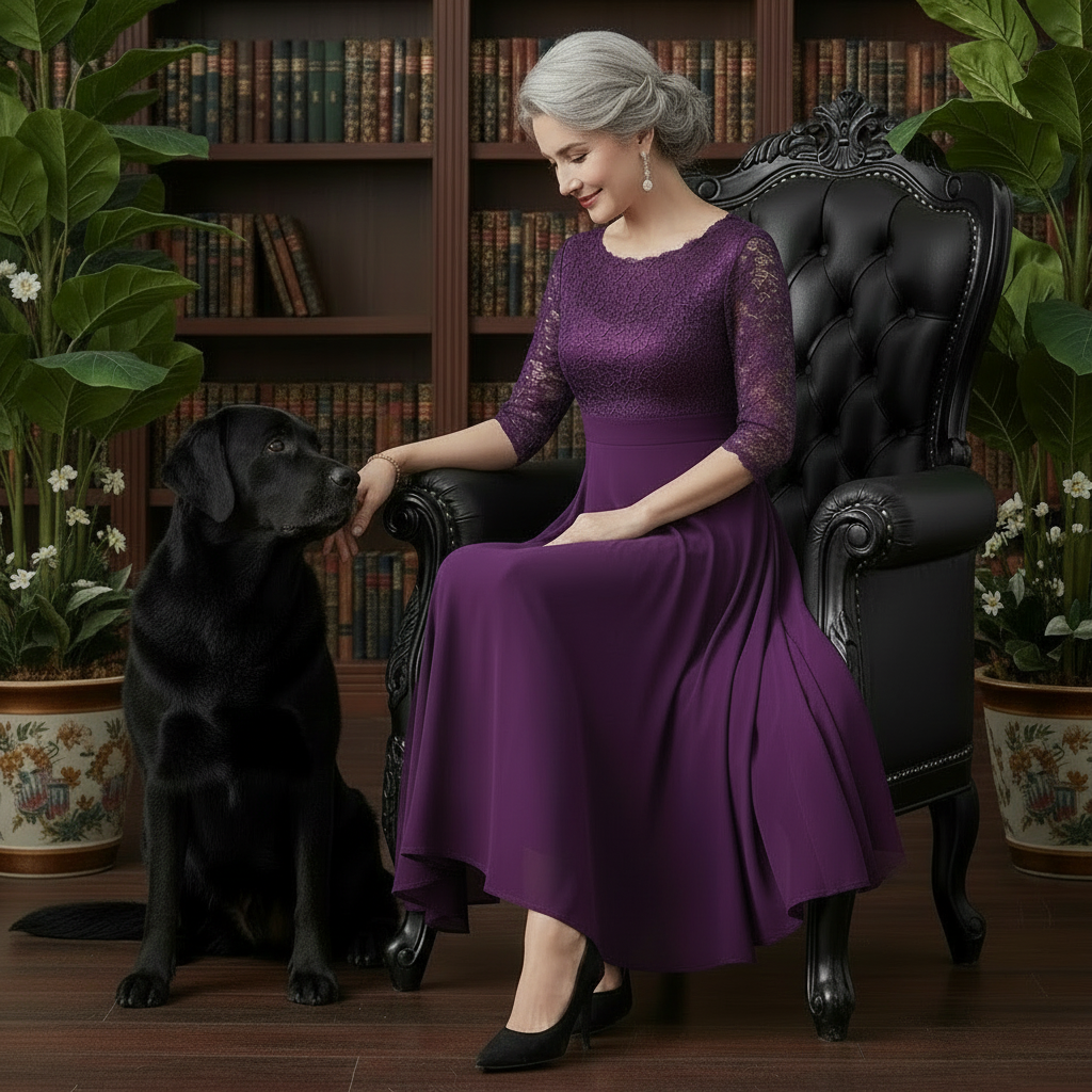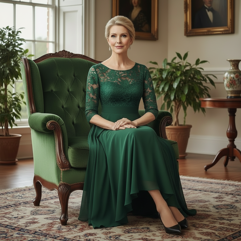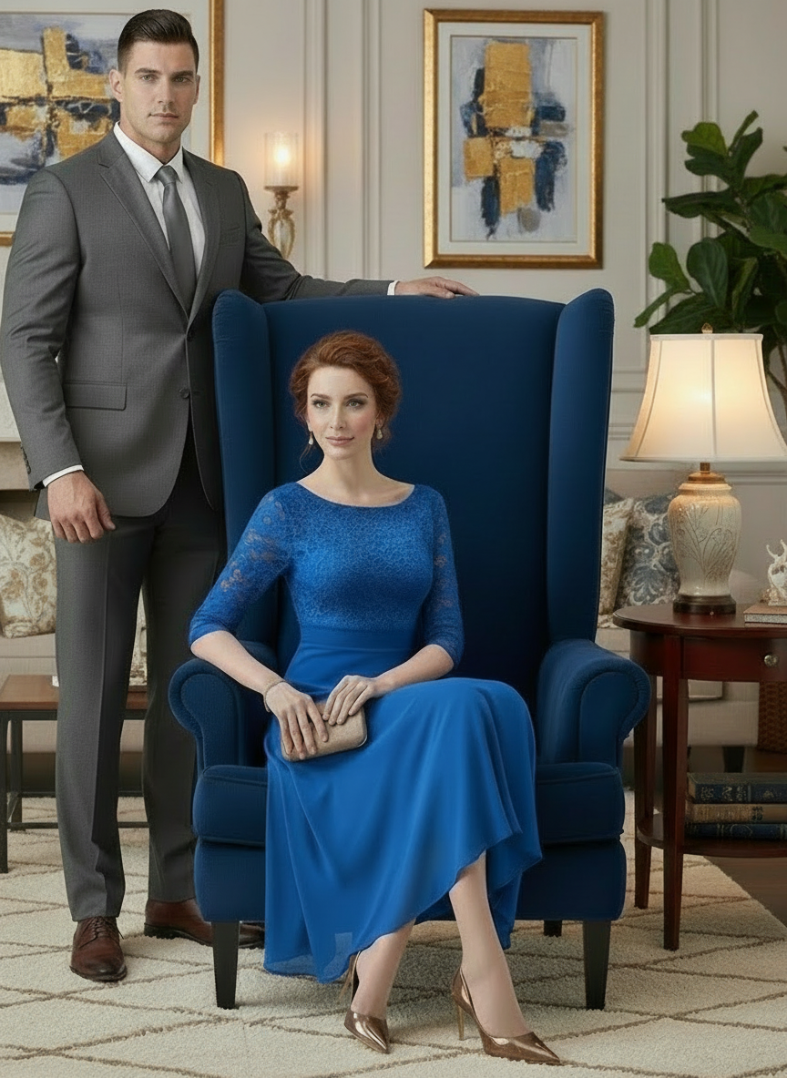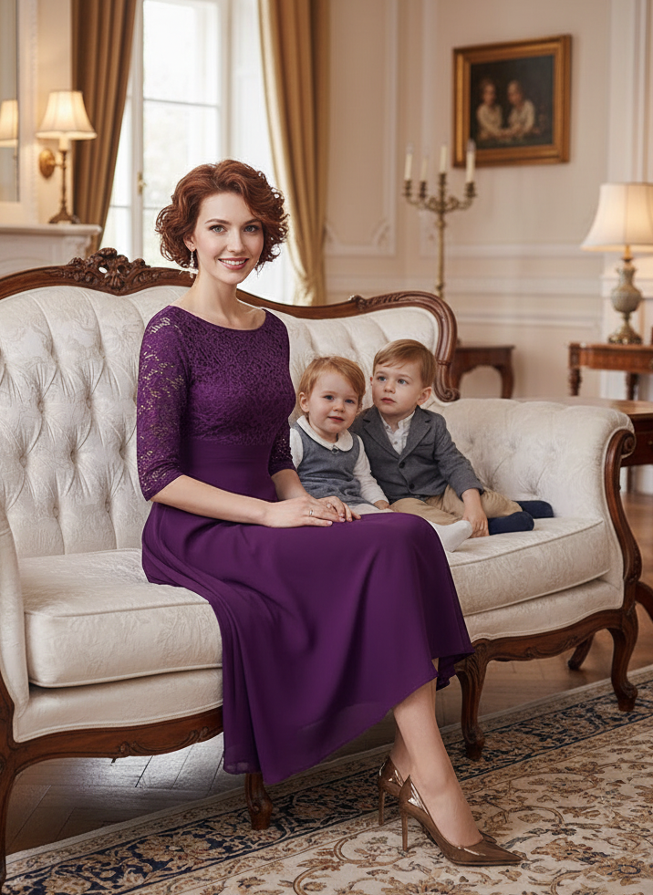 Elevate your formal wardrobe with this exquisite midi gown, showcasing flowing chiffon paired with intricate lace accents. The understated crew neckline and three-quarter sleeves provide sophisticated restraint, while the tea-length hemline ensures graceful movement and versatile styling. Whether attending weddings, galas, or black-tie celebrations, this expertly tailored piece delivers the refined elegance and polished finish expected of premium evening wear.