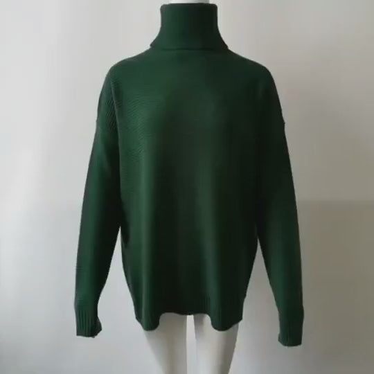 Wrap yourself in luxurious warmth with our oversized turtleneck design, crafted from thick knitted fabric that promises to keep you snug without compromising on fashion. It's more than just a sweater; it's a statement piece that exudes both comfort and flair.