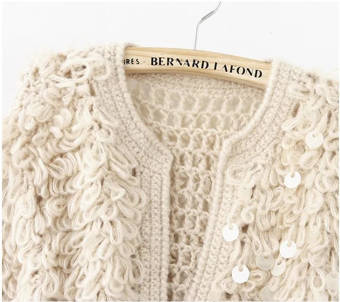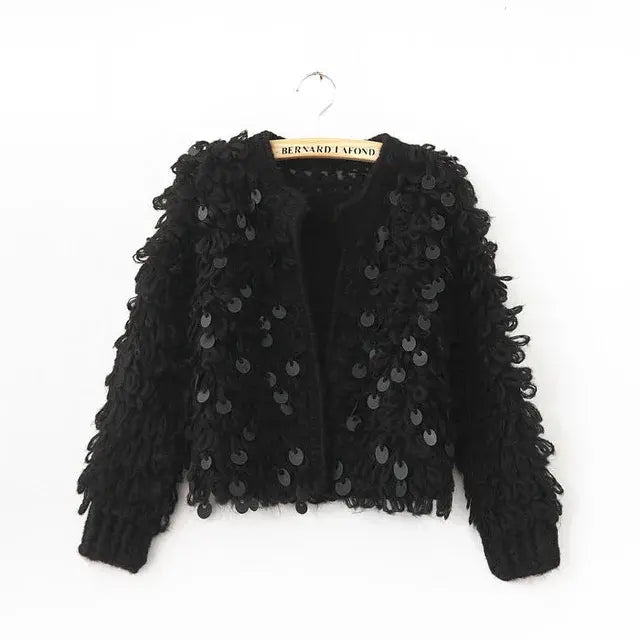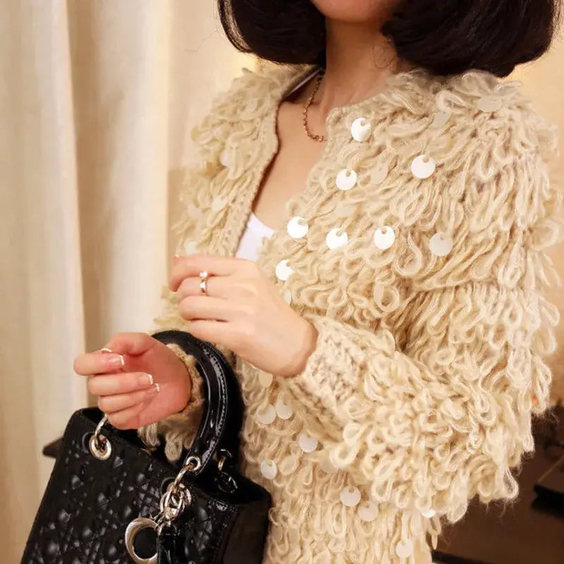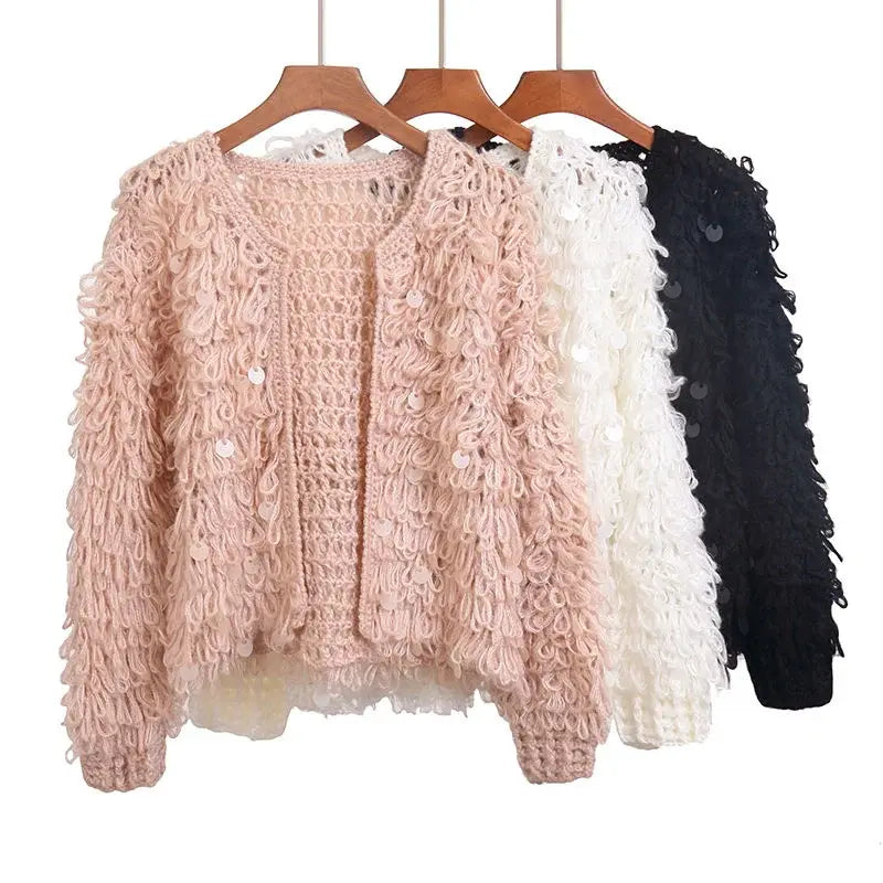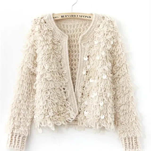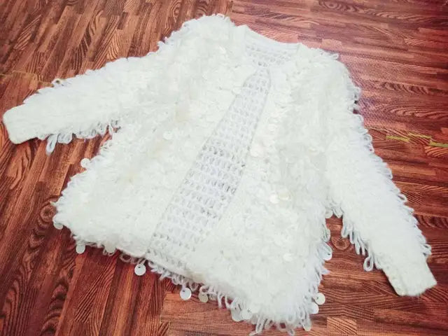 Achieve effortless elegance with winter Tassel Sequined Cardigans that make everyday dressing a breeze. Their classic design and thoughtful details, such as intricate knitting patterns and stylish buttons, add a sophisticated touch to your look. Perfect for layering or wearing on their own, these cardigans bring a refined charm to your winter wardrobe.