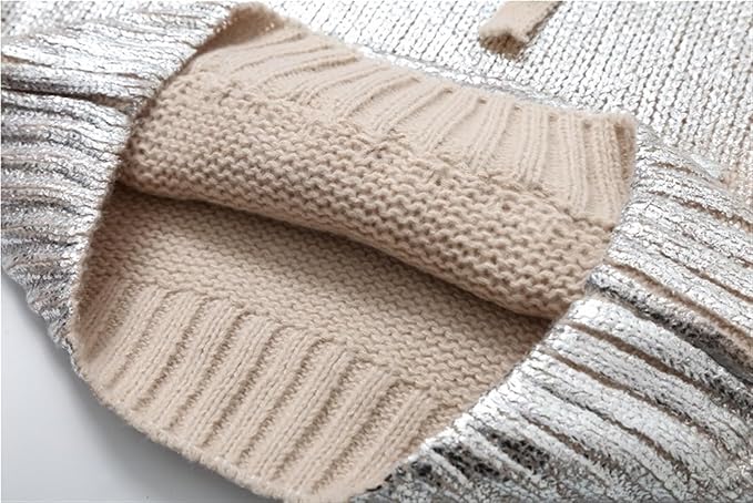The WOLFF Metallic Silver Hoodie Knit Sweater is the perfect addition to your autumn and winter wardrobe. With its unique design, comfortable fit, and versatile styling options, it's a must-have for fashion-forward women.