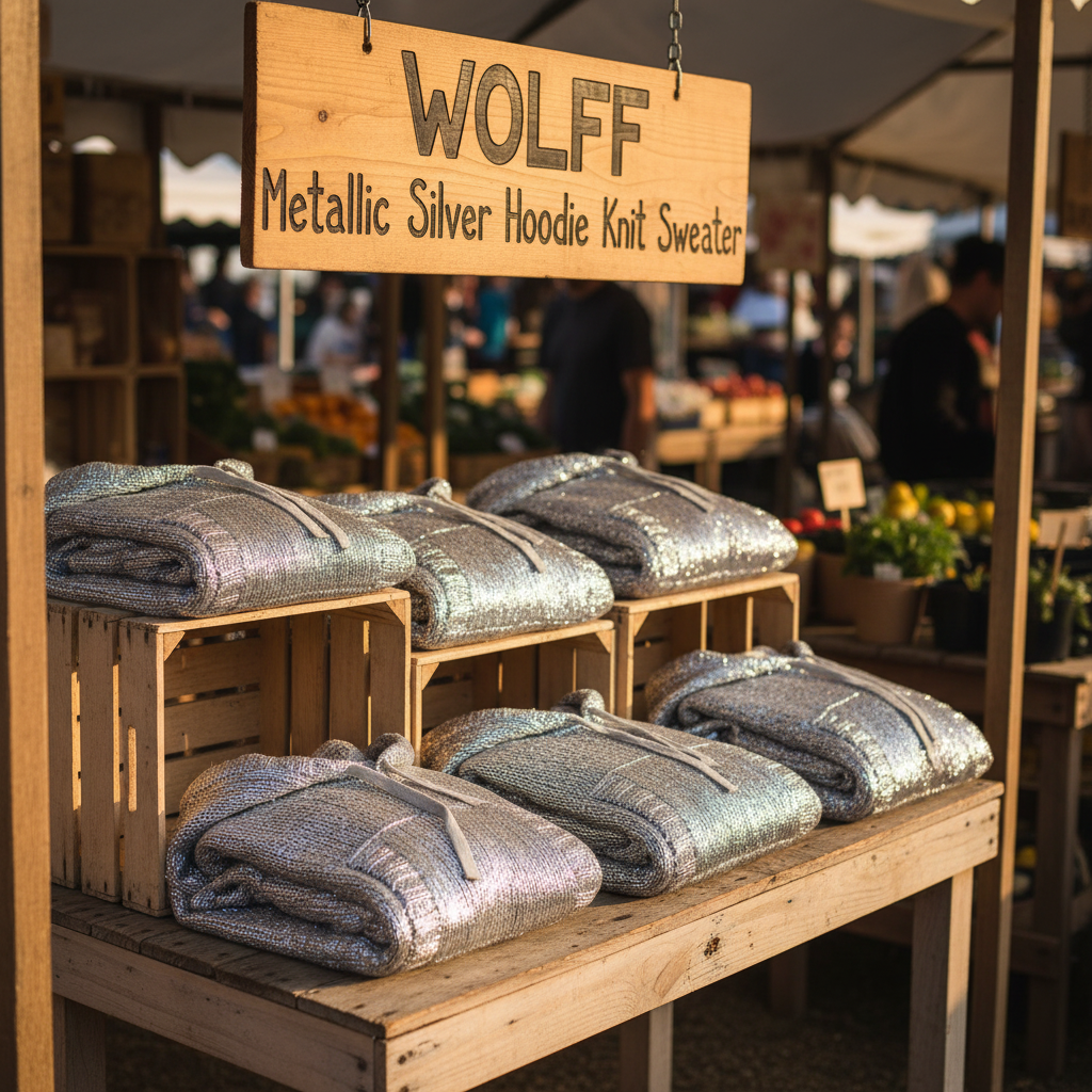 WOLFF Metallic Silver Hoodie Knit Sweater