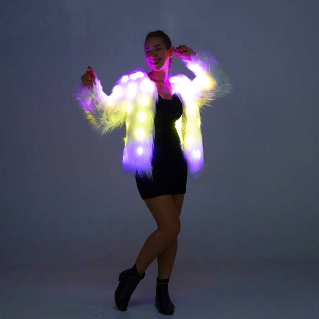 Make a bold fashion statement and light up the night with our LED Faux Fur Valentine Coat.