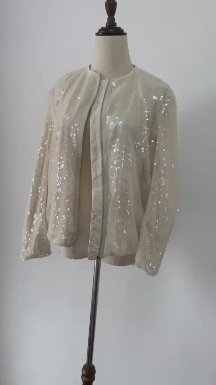 Dazzling sequins and a bold design make this bomber jacket a show-stopping addition to any wardrobe. Perfect for adding a touch of glam to any outfit, it's a versatile piece that can take you from day to night in style.