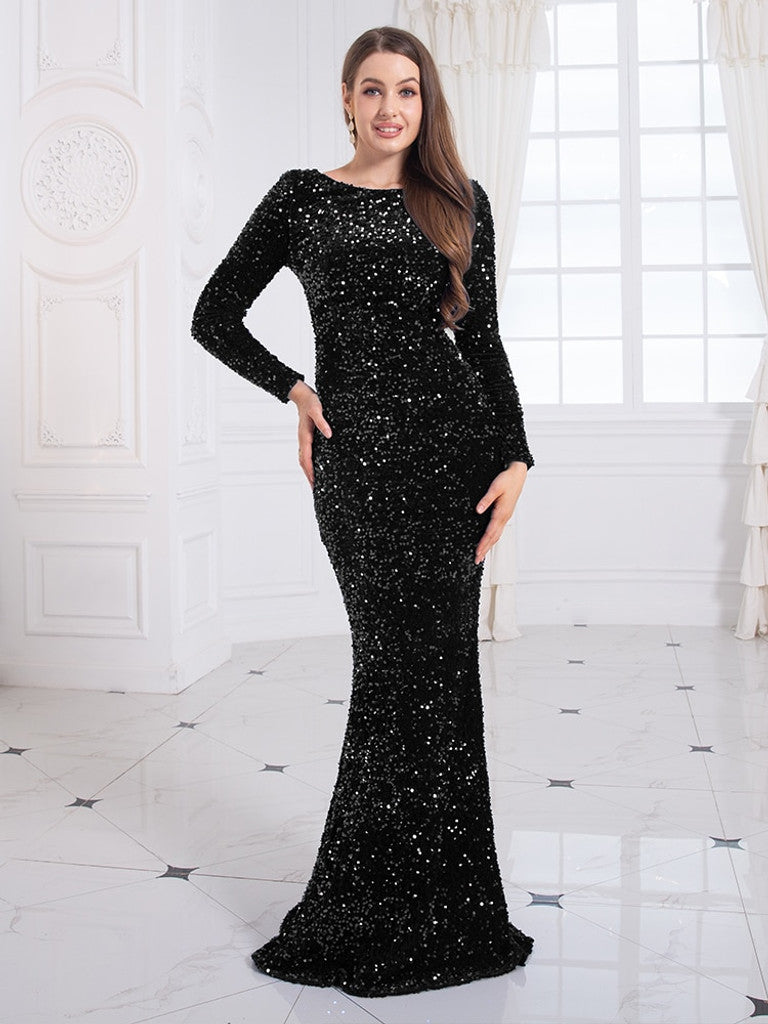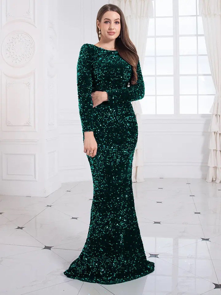 Available in classic hues of Deep Black, Royal Blue, and Dark Emerald Green, this gown is perfect for weddings, evening galas, or any formal event. Whether you're the bride, bridesmaid, or a guest of honor, this formal sequin dress will make you feel as magnificent as you look.